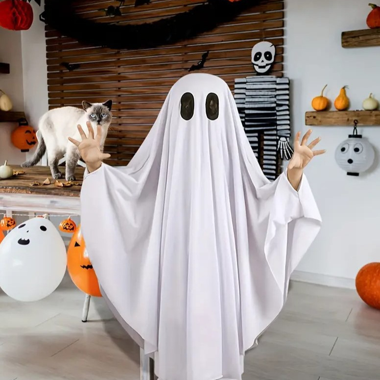新商品のハロウィンの子供は幽霊に扮装して子供の役を演じて服の女の子の男の子の白い幽霊のマントを演じます。