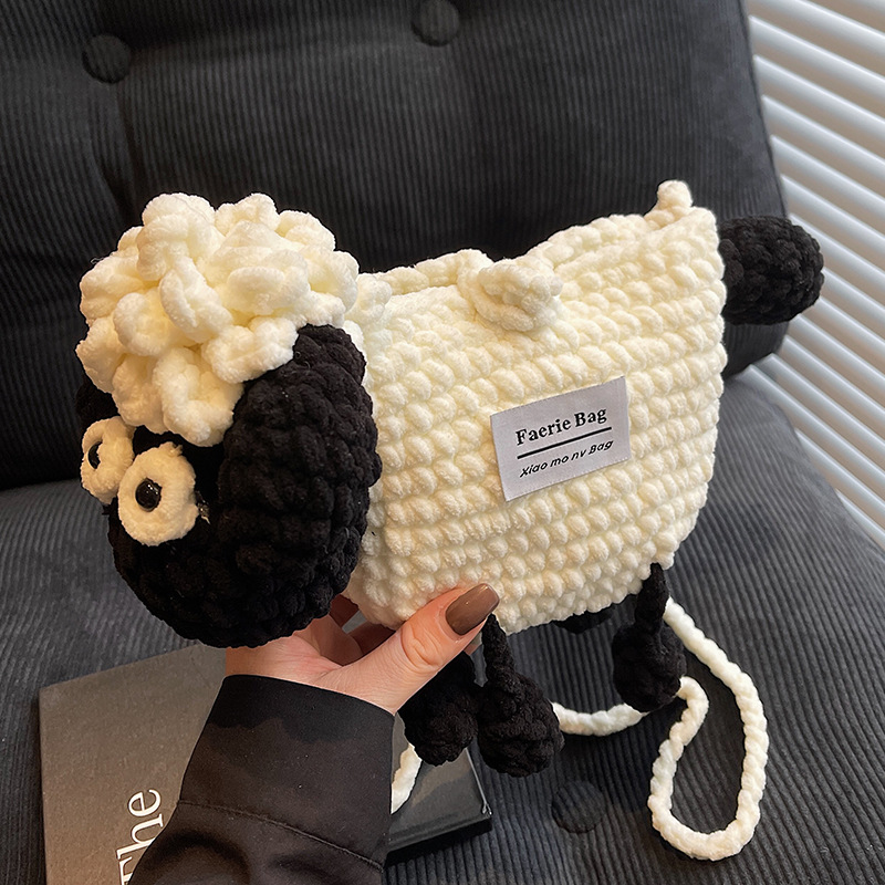 春の夏は奇妙でかわいい羊の毛糸バッグ女性2025の新しい子供のニットが携帯電話の財布を斜めに掛けている
