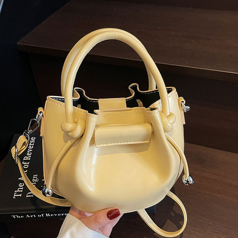 人気の韓国版シンプルなしわの小さい清新な手提げバケツに油蝋の皮の質感を包んで通勤します。