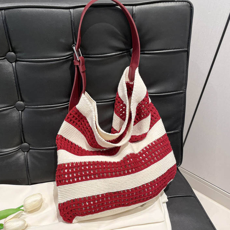 大容量編みバッグニット2025春新作トート透かし彫りシングル肩海辺通勤リゾートビーチバッグ女