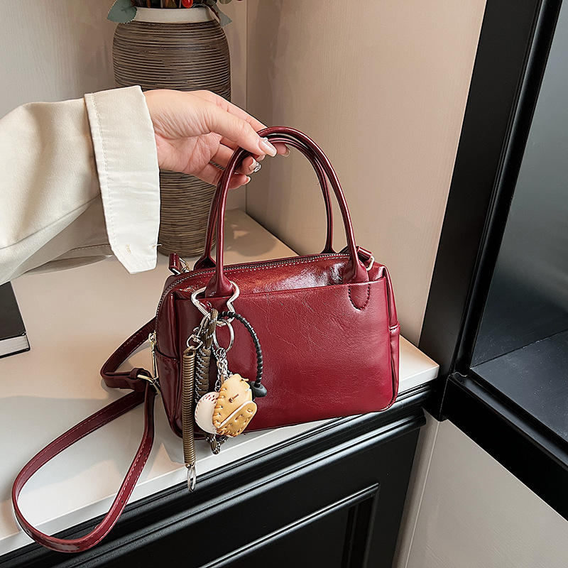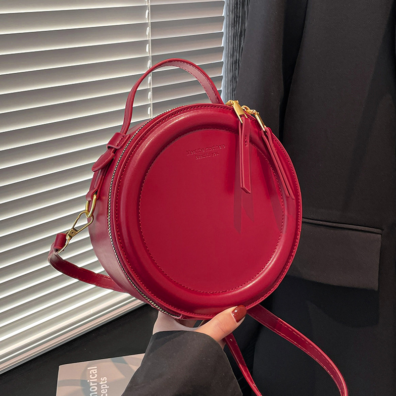クロスボーダー個性百合ins純色手提げ小円バッグ女性カジュアル通勤シンプル風斜め掛けバッグ