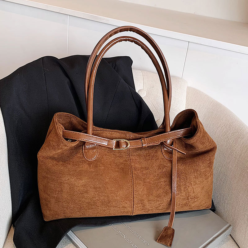 韓国系大容量ファッションスエードの質感の通勤バッグ女性2024秋冬の新型シングル肩の母のバッグ