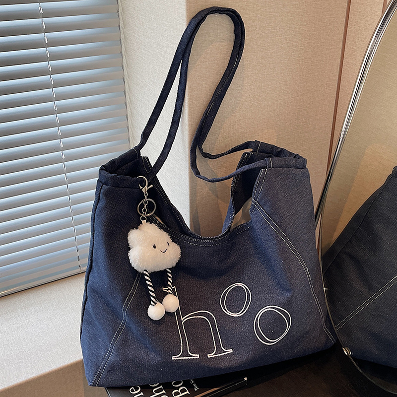 2025 韓国レトロデニムバッグトートバッグ大容量レターショルダーバッグ脇の下バッグカジュアル通勤バッグ女性のための