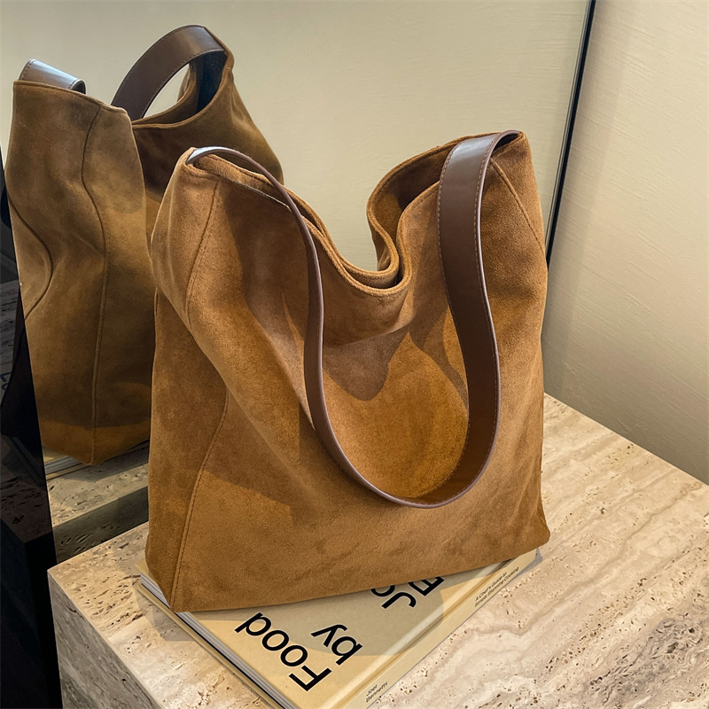2024新型韓国の絨毛の脇の下のレトロな幅の肩ベルトの怠惰な風の大容量の特包の柔らかい皮のショルダーバッグ
