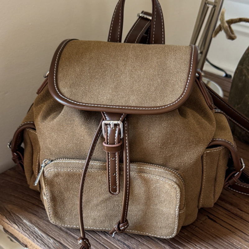 2025 夏の新ニッチシンプルなキャンバスバックパックレトロ大容量ショルダーバッグカレッジスタイルのハンドヘルドバックパック