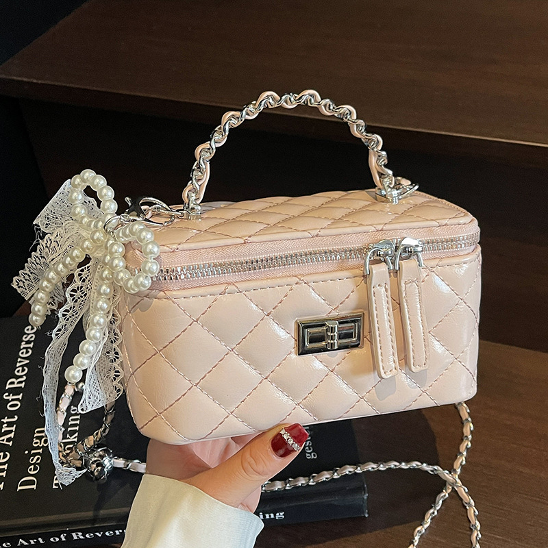小香風の精緻で甘い菱格の手提げケースが流行しています。