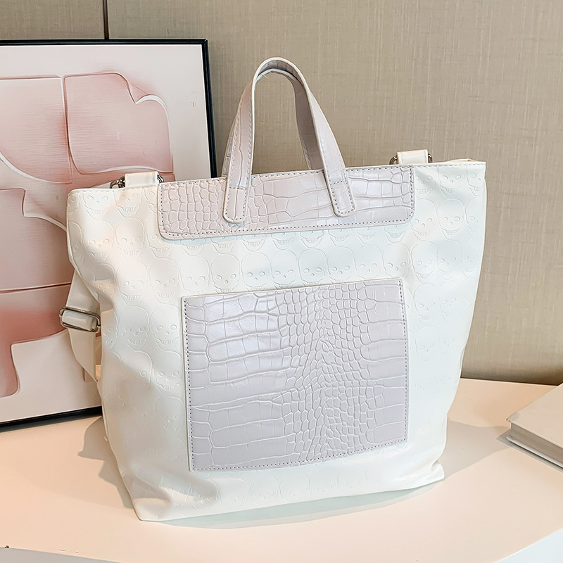 ヨーロッパとアメリカのトレンディなクロコダイル柄の大容量ポータブルトートバッグ、女性用、ファッショナブルでクールなスカルステッチクロスボディバッグ
