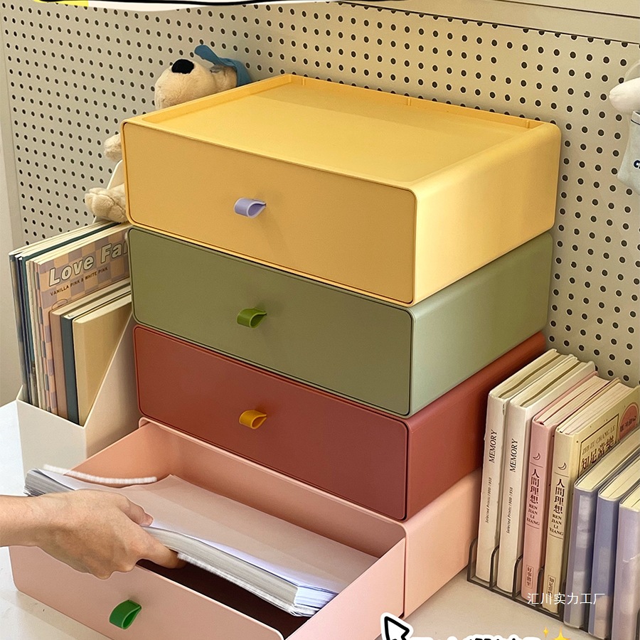 クリームデスクトップ収納ボックス引き出し式防塵デスク寮デスクテーブル改修文具収納ラック小