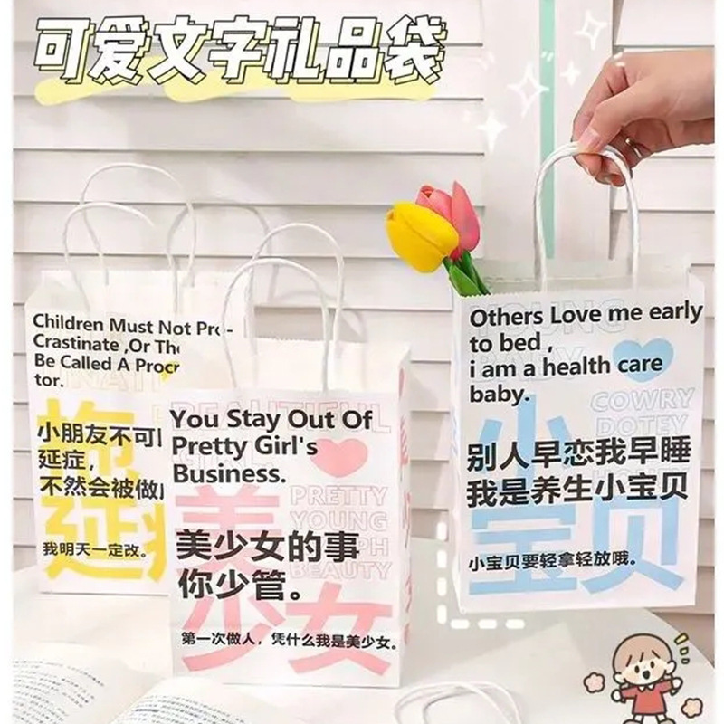 ins ギフトバッグ韓国スタイルのポータブル紙袋インターネット有名人のクリエイティブテキスト包装春のケータリングギフトバッグ誕生日包装