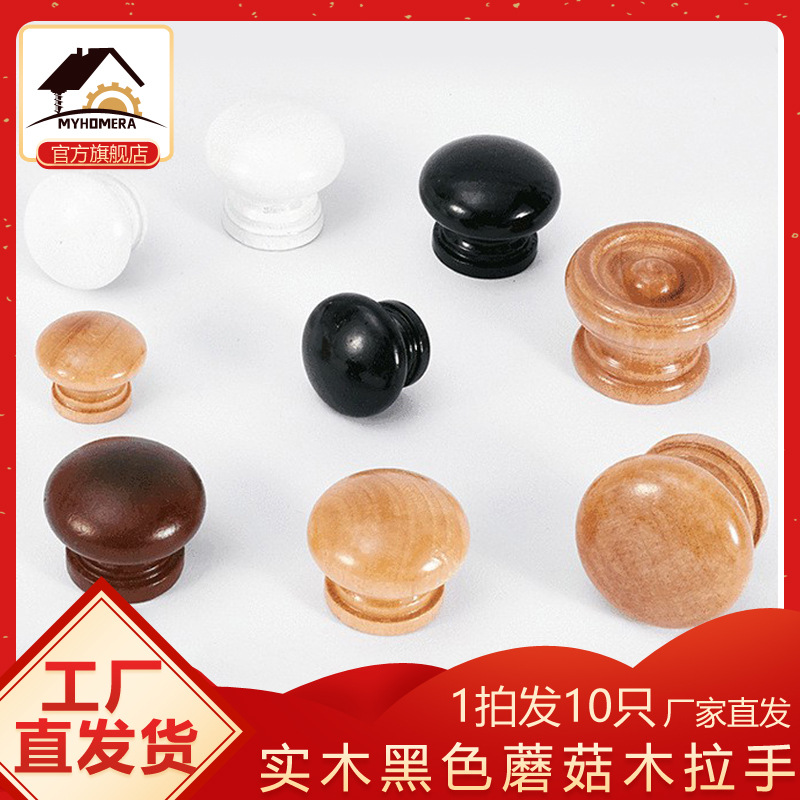 ソースファクトリー ブラックハンドル 無垢材ハンドル 単穴キャビネットドア 引き出しハンドル 大きなキノコハンドル 丸い木製