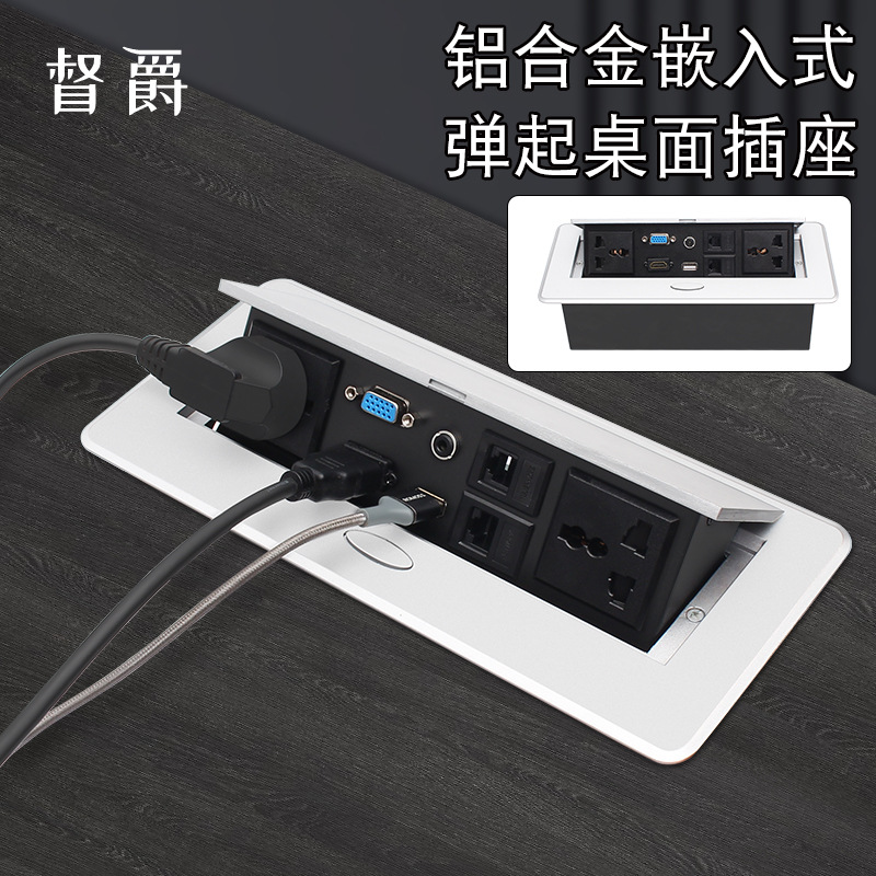 フリップカバー多機能オフィステーブル会議テーブルワイヤーボックスマルチメディア電源デスクトップソケット隠し埋め込み式アルミ合金
