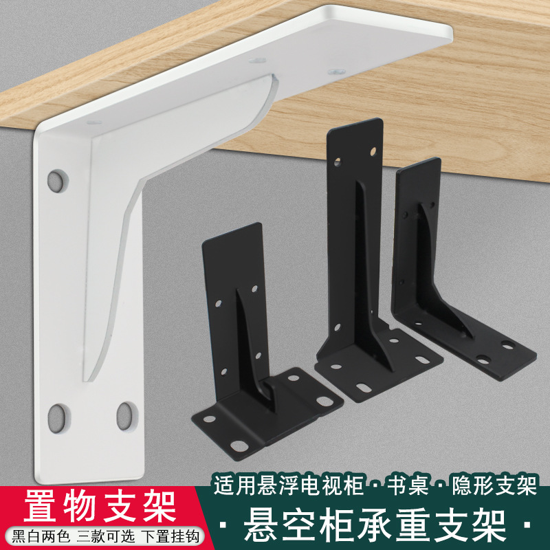 三角ブラケットの積層板は吊り下げテレビの棚に支えられています。