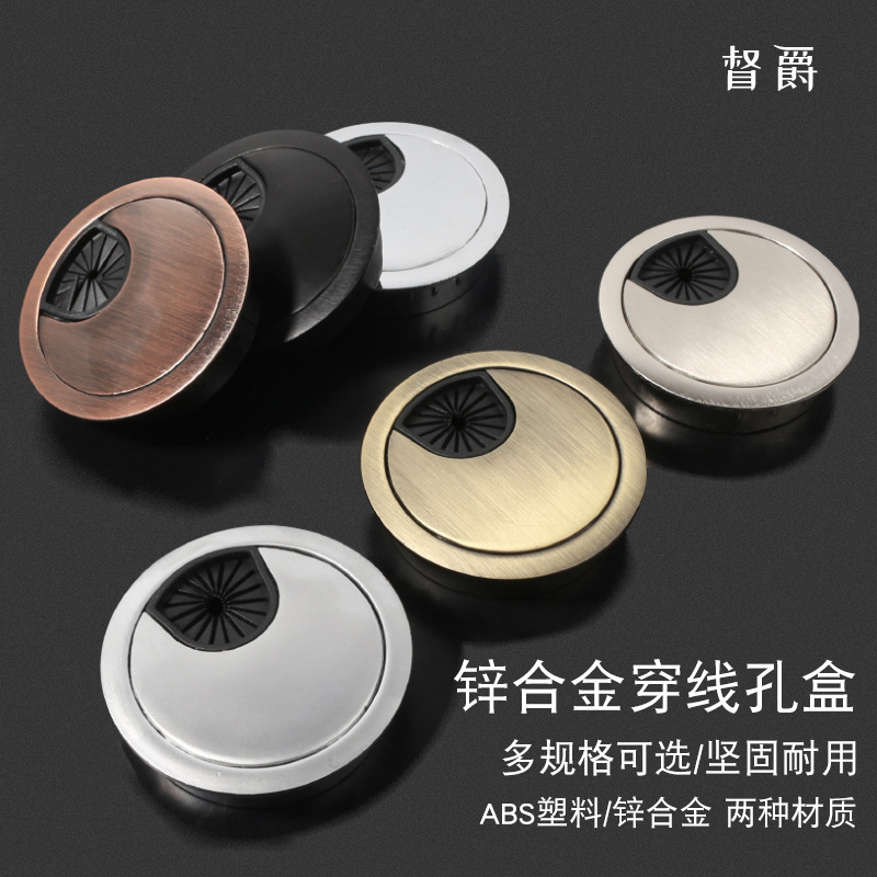 アルミ合金の糸通し箱のデスクトップの穴の蓋はブラシの条の事務の家具の糸通しの溝の糸通しの穴のコンピュータの台の糸の穴の蓋を持ちます。