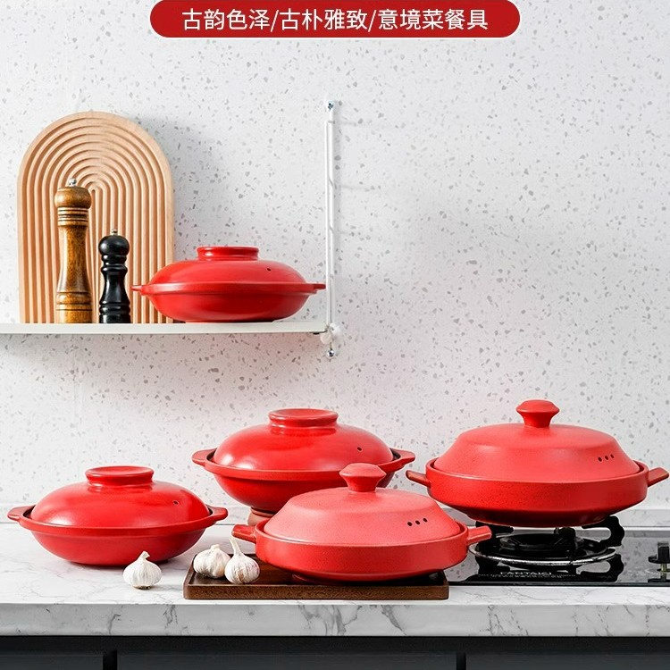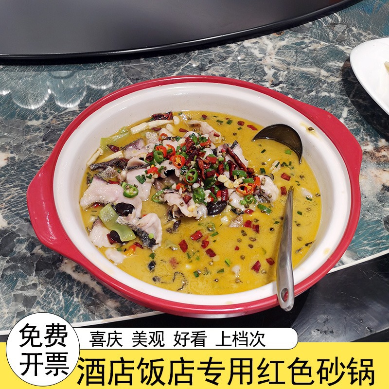 康舒陶磁器ホテル専用赤白色土鍋赤浅鍋商用大容量魚頭鍋明火ガス