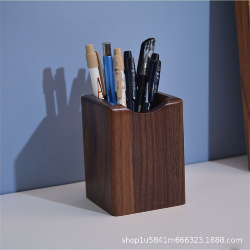 黒胡桃木デスクトップ収納ケース実木創意筆筒シンプル事務机立体モデル中国式筆筒箱