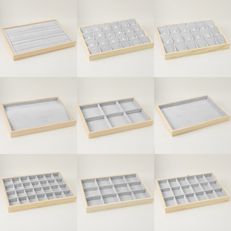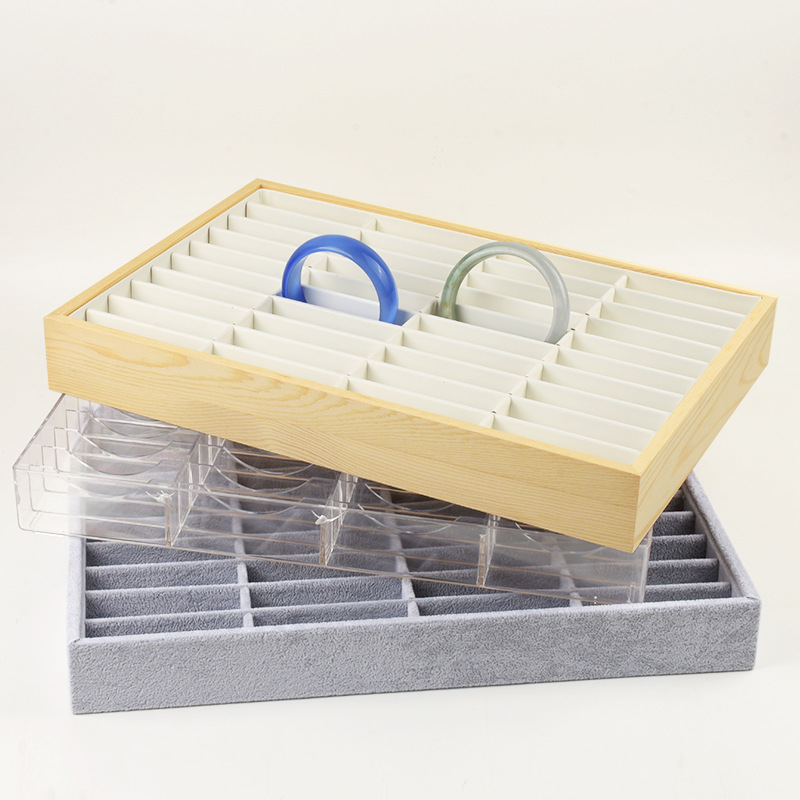 ブレスレット展示トレー棚実木内白40位ブレスレット皿透明アクグレーベルベットカウンター陳列皿