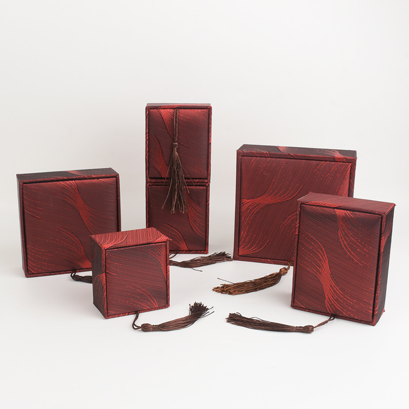 赤い包装のアクセサリーの贈り物の収納箱のフリンジの復古の指輪の箱のペンダントのブレスレットのブレスレットの手の串の翡翠
