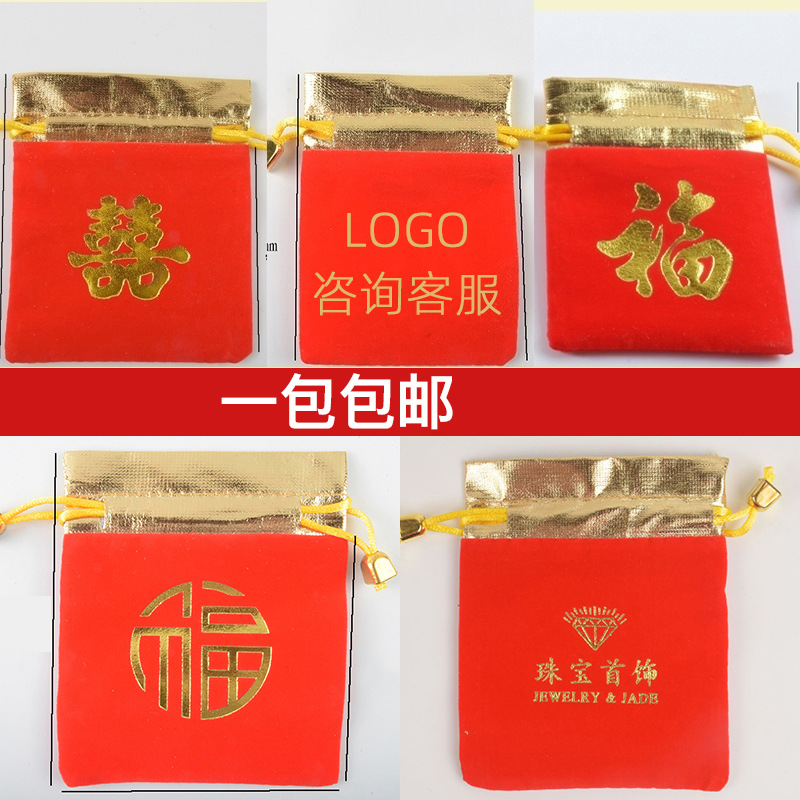 赤い錦嚢アクセサリー福袋双喜袋コイン収納金辺小財布布袋ベルベット手串喜糖袋