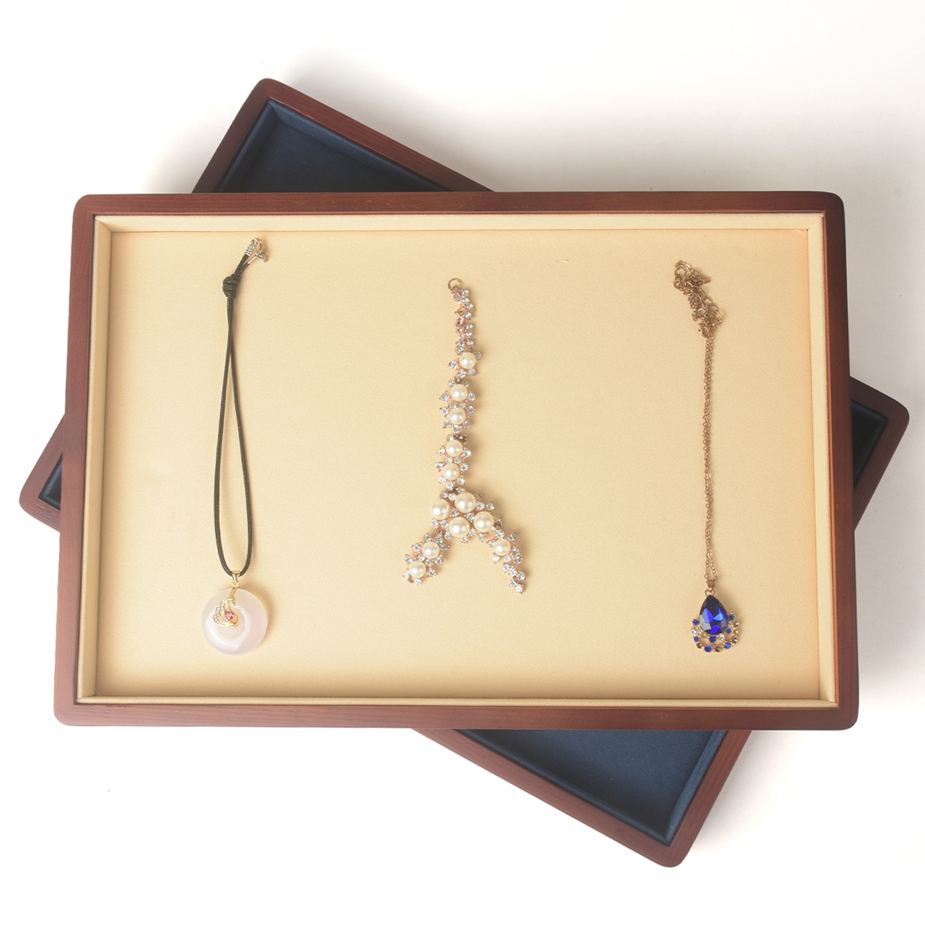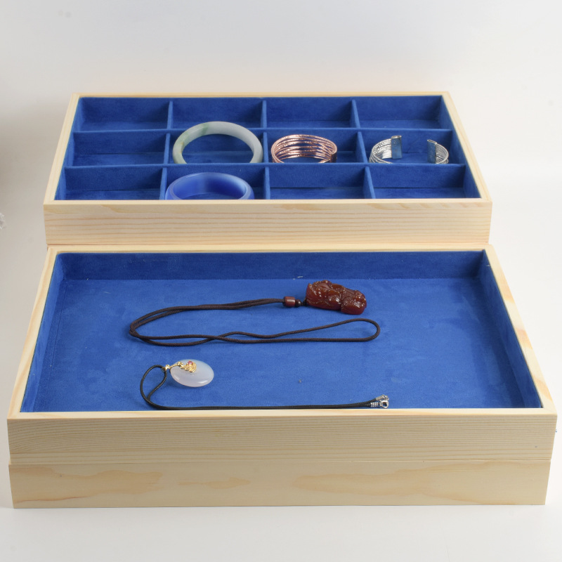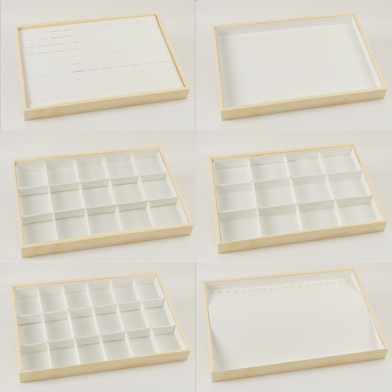 木造のジュエリーの展示陳列置物は商品の収納盤の指輪のペンダントのブレスレットのネックレスのイヤリングの皿を見ます。