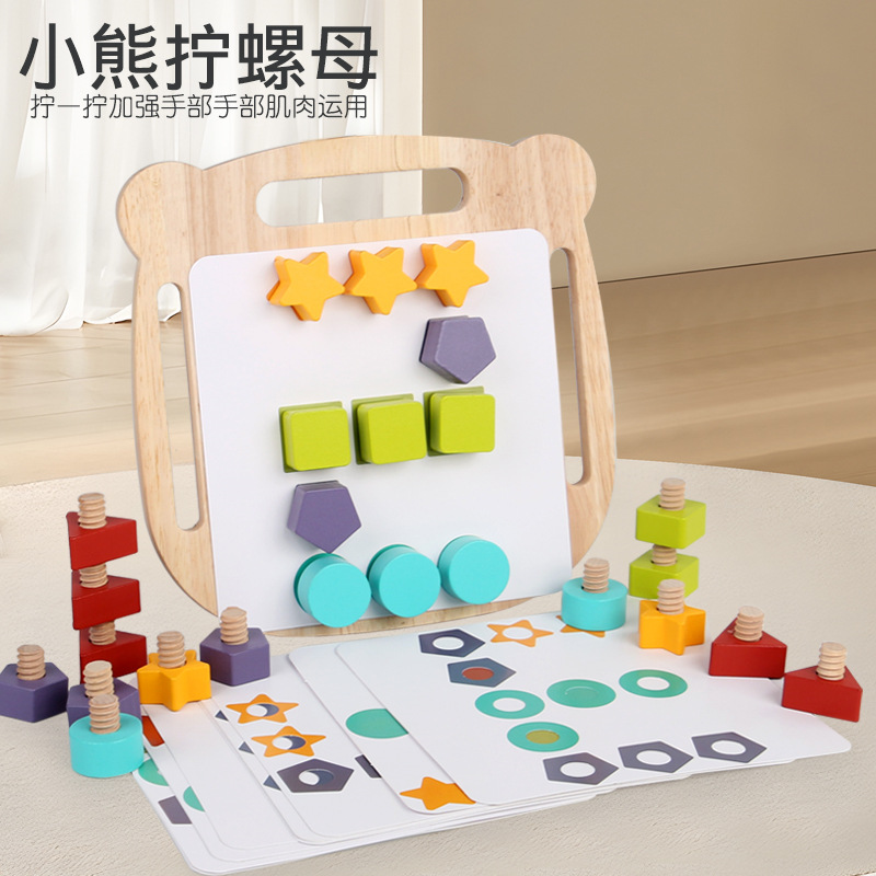 子供の木の益智の熊はねじのおもちゃの赤ちゃんをねじって手を動かして脳の能力を動かして親子のインタラクティブな色を育成します。