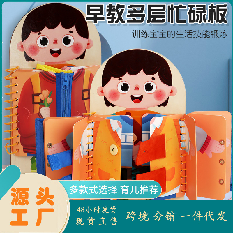 CPC CE木質多層多忙板蒙氏早教益智玩具幼稚園は服を着て手を出す能力を練習する