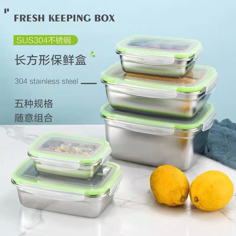 304密封保存ケース角型ステンレス蓋付き弁当箱冷蔵庫収納ケース食品弁当箱クロスボーダー