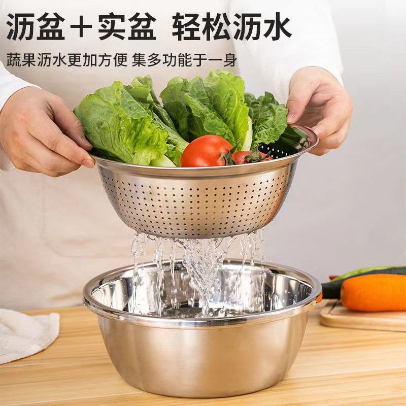 密孔の多くはかごのステンレスの野菜かごの漏れ鉢の9.9の商品の供給源の水たまりの単環の漏れかごで米を洗うことができます。