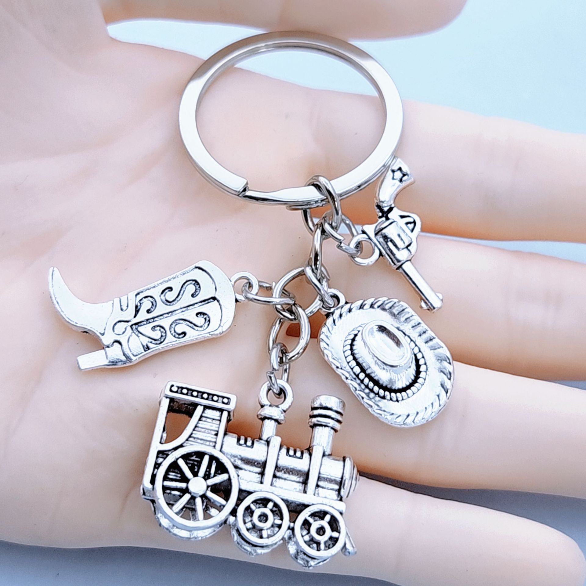 機関車頭カウボーイ帽ブーツ馬蹄鉄馬頭小ピストルアマゾンクロスボーダー西部特色キーホルダー
