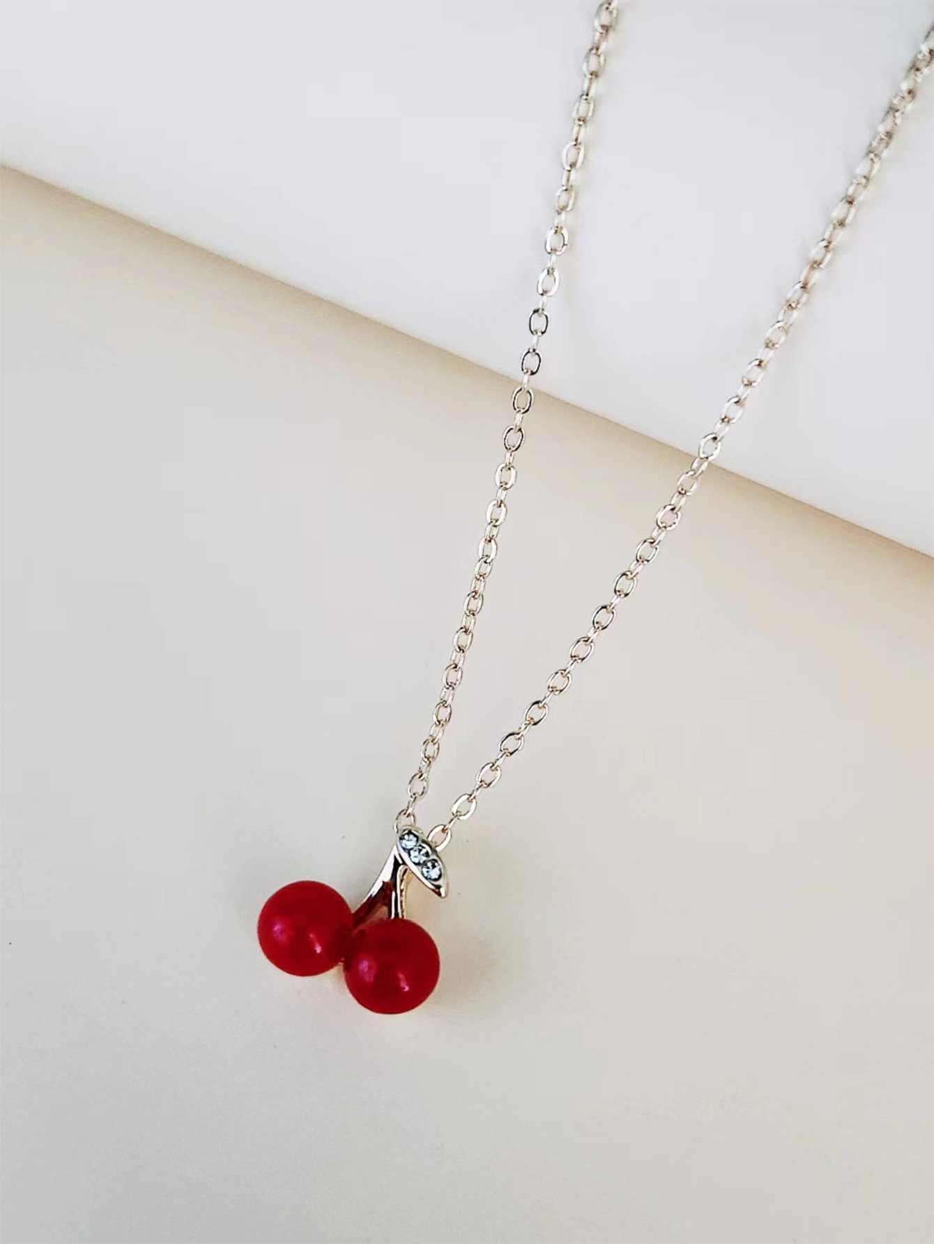 欧米のファッションは赤いさくらんぼのペンダントのネックレスの鎖の鎖の軽い豪華な女性の大衆の設計の百合の装飾品の卸売りが流行します。