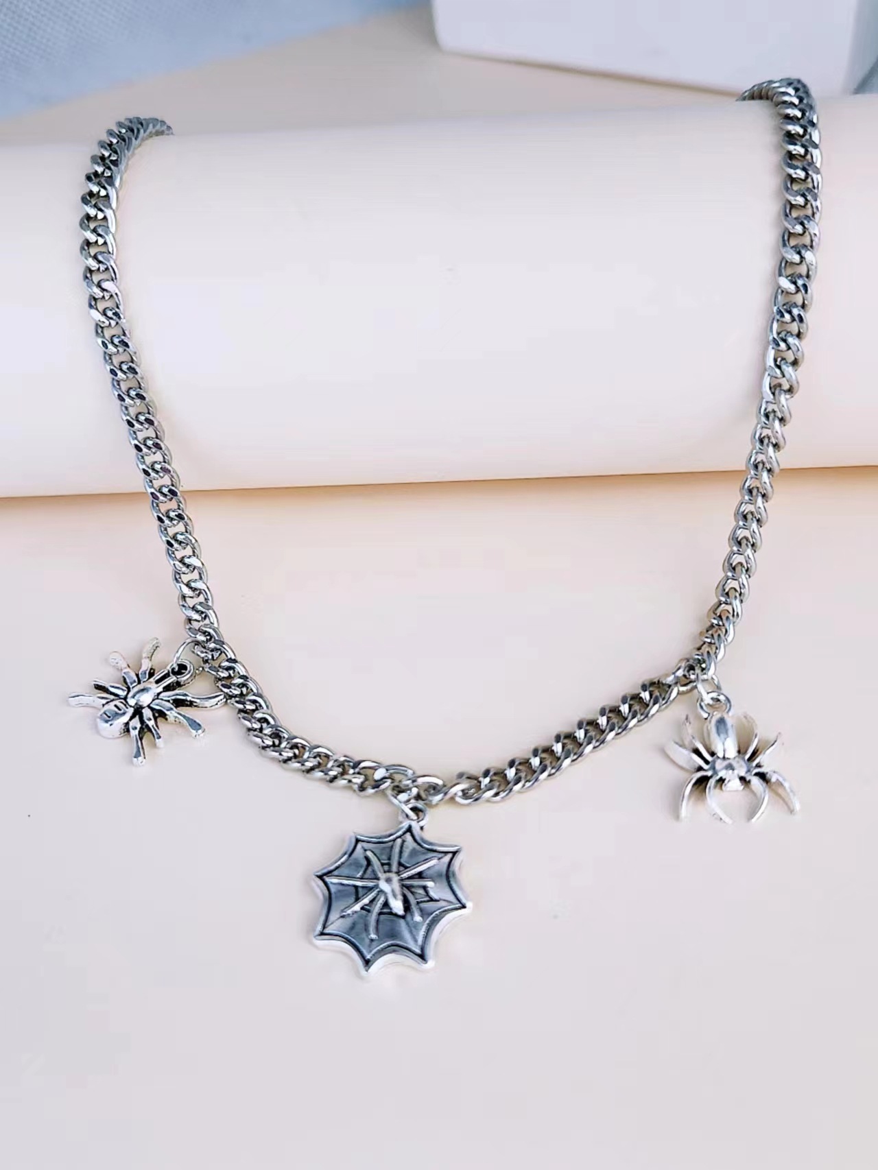 欧米のファッション流行の蜘蛛の巣のネックレスのペンダントの大衆の設計の高級感のチタン鋼の鎖の骨のチェーンの2023年の爆発金