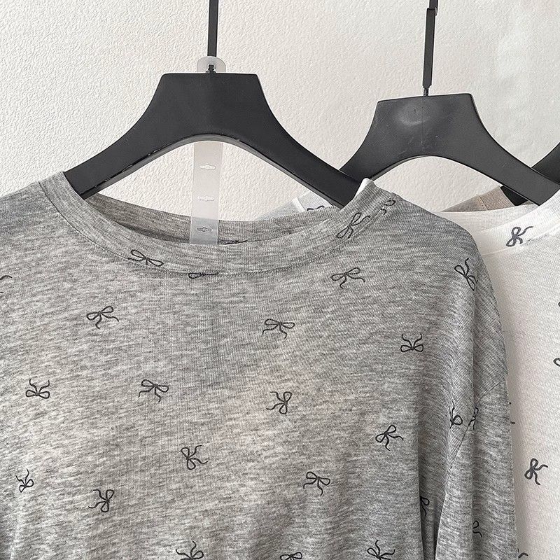 アメリカのレトロな蝶結びの長袖tシャツの女性の夏のデザイン感が小さいです。