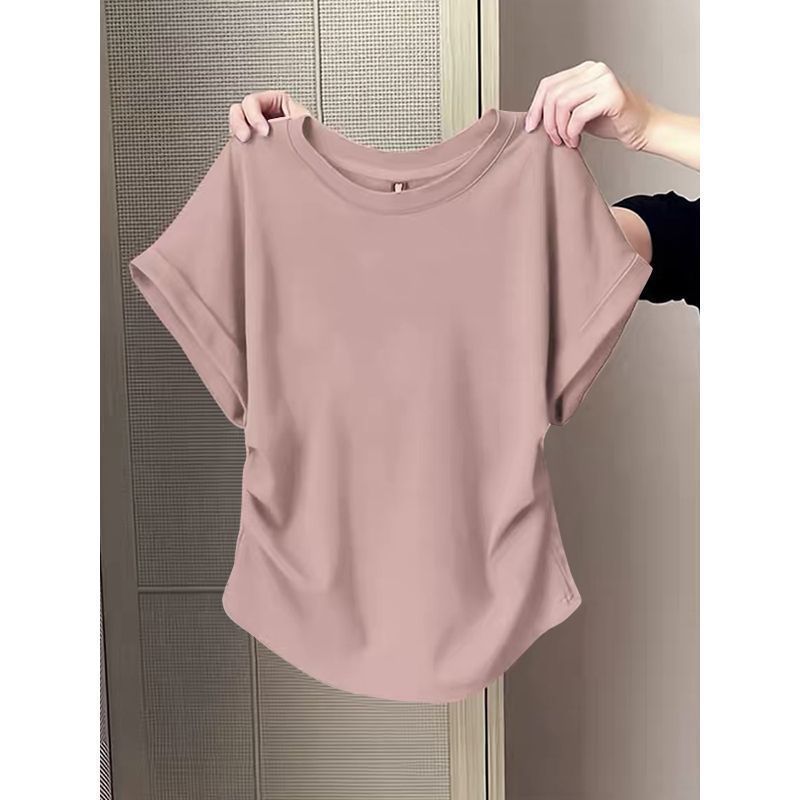 怠惰な風の気質は半袖のtシャツの女性の夏の新型のゆったりしている高級なファッションの百合の洋気のコウモリの袖の上着を打ちます。