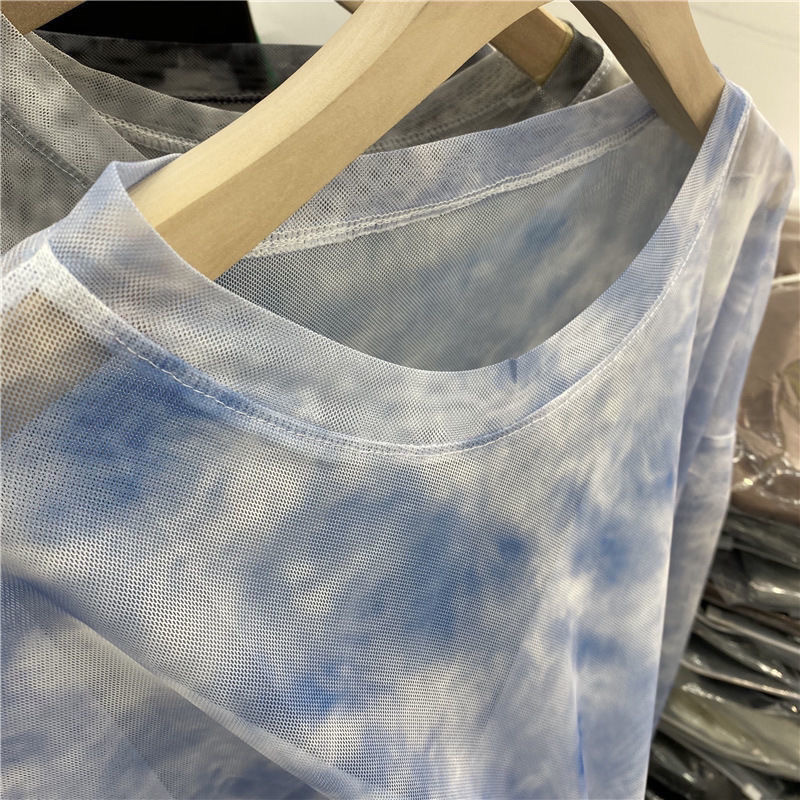 デザイン感の薄い水墨画ネット糸長袖tシャツ女性2025夏韓国版エアコンブラウスゆるい日焼け止め上着
