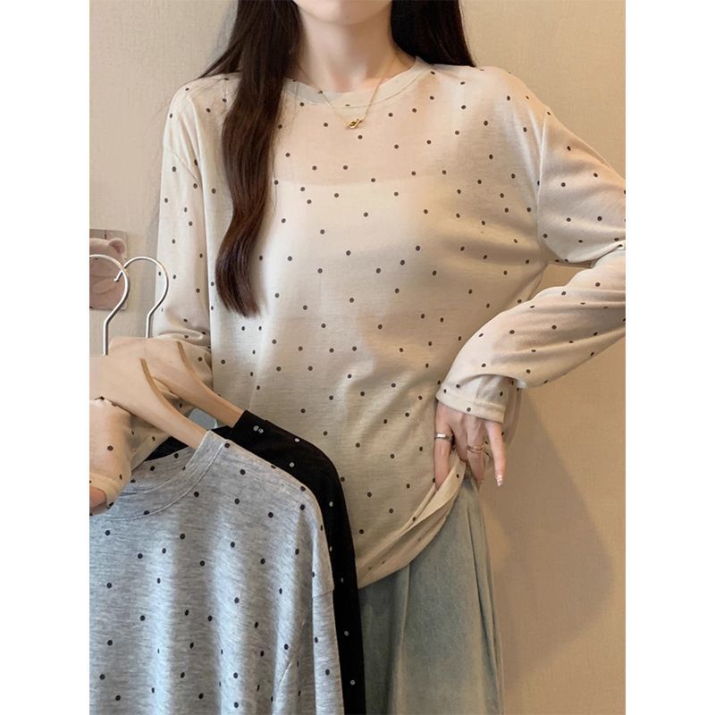薄い波点氷糸日焼け止め長袖tシャツ女性2025新型夏のゆるいサイズの外着ブラウスに服を着ている