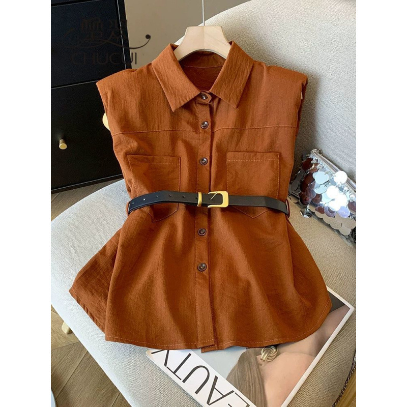 夏のノースリーブベストレディース2025新作ユニークなカンフートップス高級感シフォンシャツ気質シャツ
