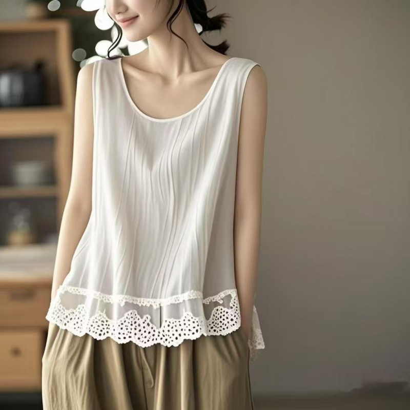 春夏の新作甘辛ベスト、女性用スモールサスペンダー、純情レースボトムシャツ、雰囲気のあるインナーウェア、スリムアイスシルクトップ