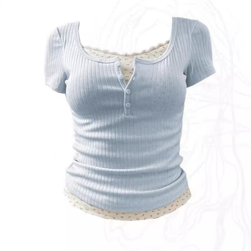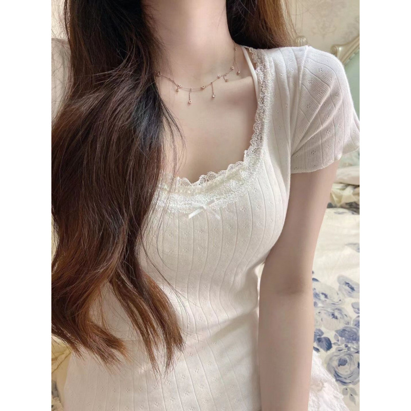 純欲BM風レース偽半袖tシャツ女性夏フランス高級感修身内に甘いギャル上着がついている