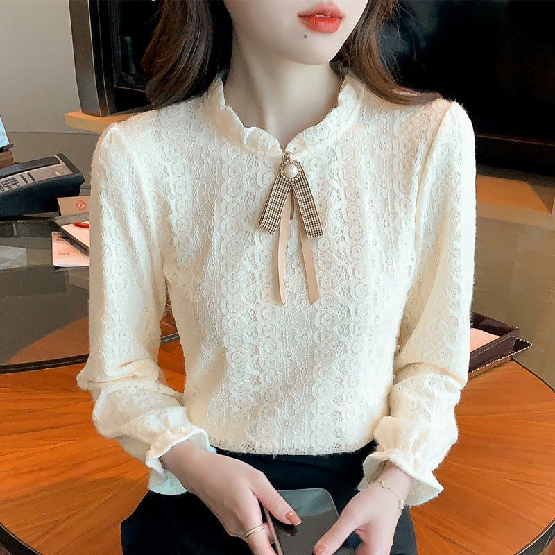 高級感の上着の独特なレースの小さいシャツの女性2025夏の新型の仙の気質のデザイン感の小さい衆のシフォンのシャツ