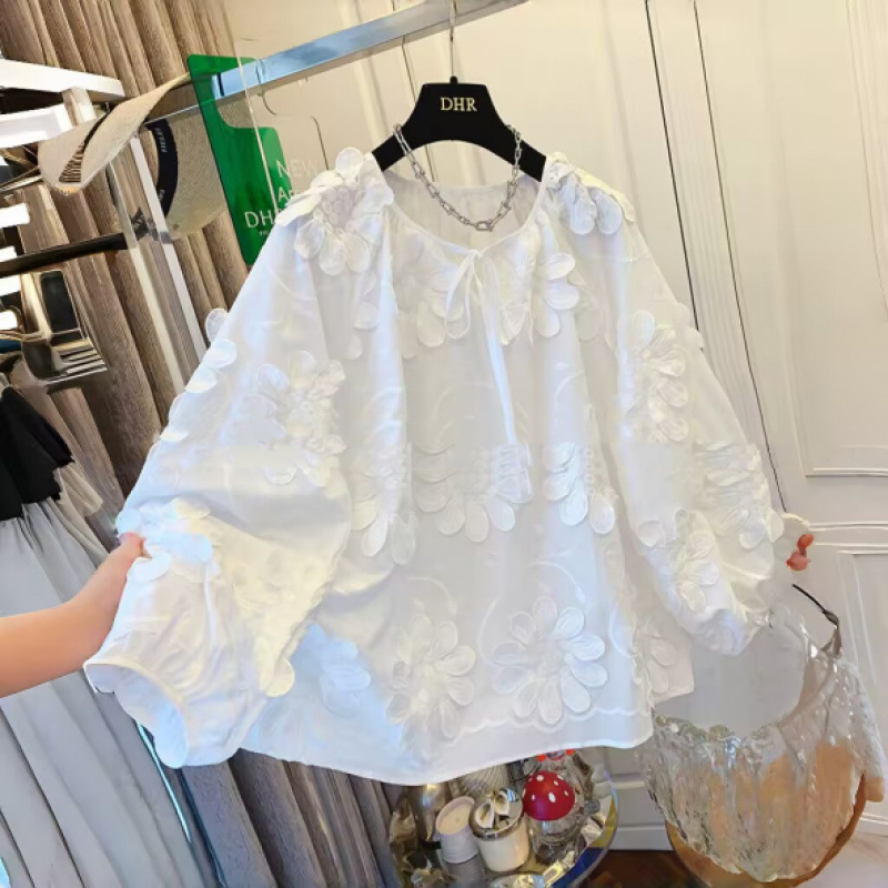 高級感がとても綺麗です。フランス刺繍レースの花が白いシャツです。