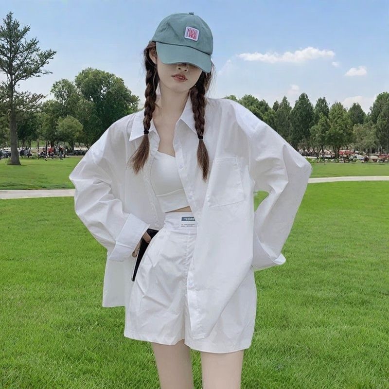 Xiaoxiangfeng シャツ女性の夏のデザインニッチレトロカバー尻ルーズレイジーホワイトシャツアウタートップ