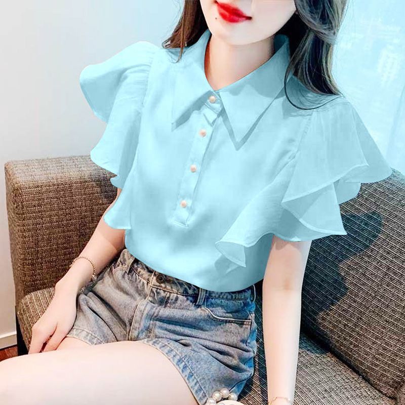 荷叶边飞飞袖翻领衬衫女装夏季2025年新款设计感小众别致短袖上衣