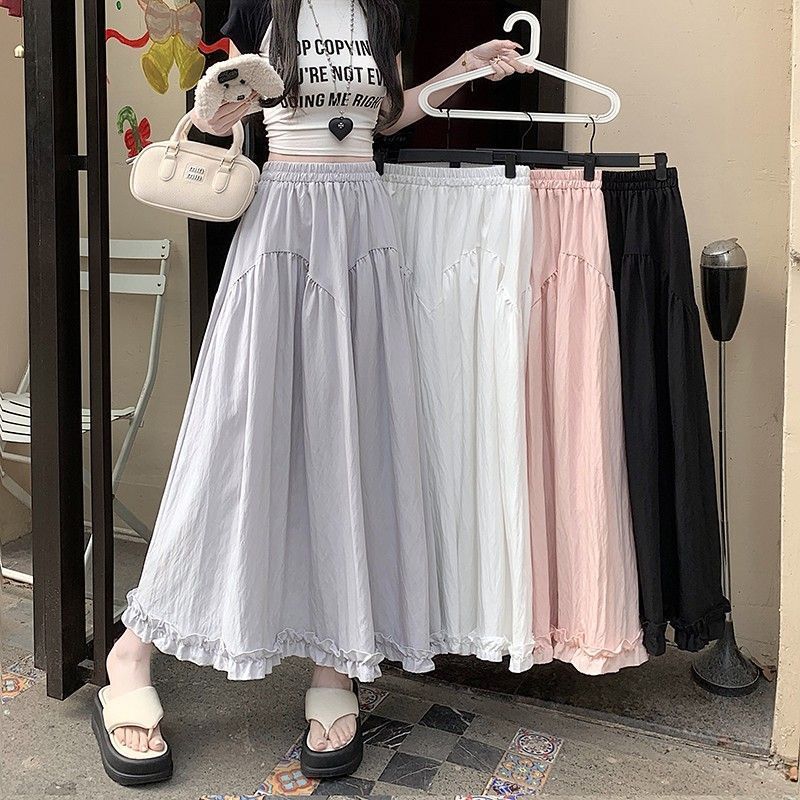 大きいサイズの優しい風の純色のスカートの女性の夏の太っているMMは腹を遮ってやせているスカートのナシの形の体つきの垂れ下がっている感じのa字のスカート