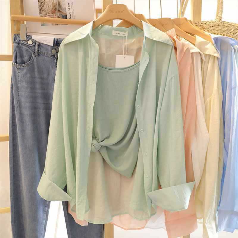 夏の日焼け止めシャツ女性の薄いタイプのゆるい怠惰なカーディガンカジュアルな新しいデザインシャツコート長袖上着