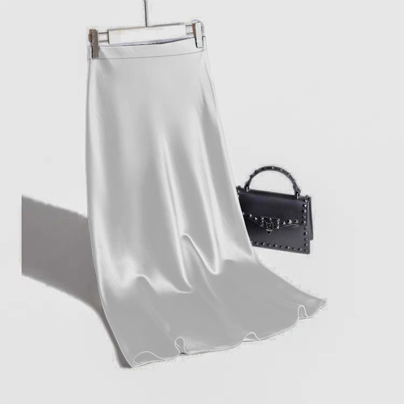 シルクの滑りのペンダント感は酢酸のサテンの半身のスカートの女性の2025夏の新型の大きいサイズに似ています。