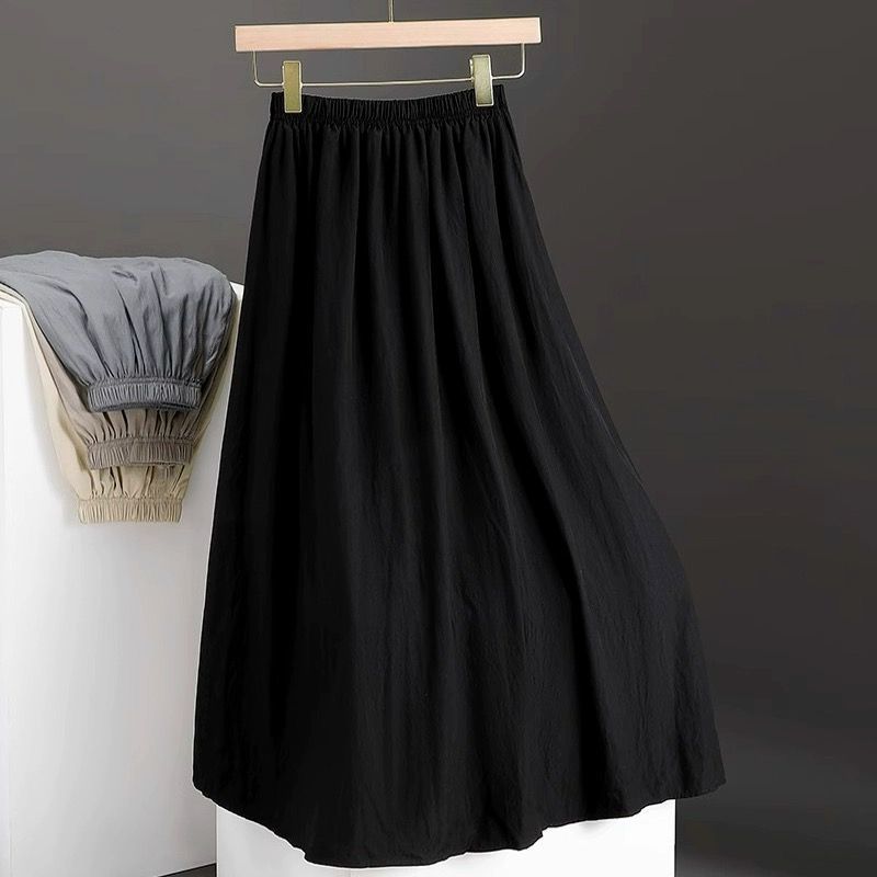 アンズ色ハイウエストa字プリーツスカートレディース2025新作夏高級感シフォン気質カジュアルロングスカート