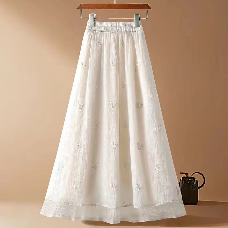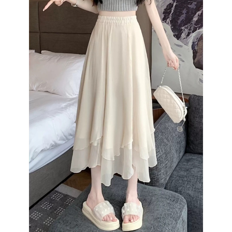 スカートの女性の夏のロングスカートの薄いタイプ2025新型のハイウエストのデザイン感a字の長いタイプの不規則なネットのスカート