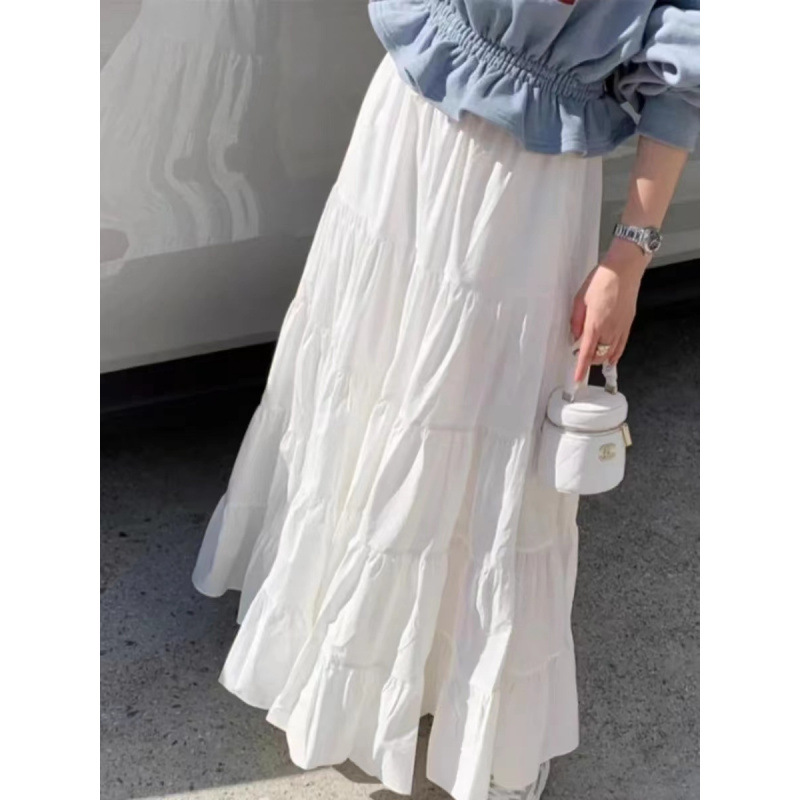 レトロファッション カジュアル シンプル 多用途 ハイウエスト ケーキスカート 大きな裾 ハーフスカート ロングスカート 女性向け 都会通勤スタイル