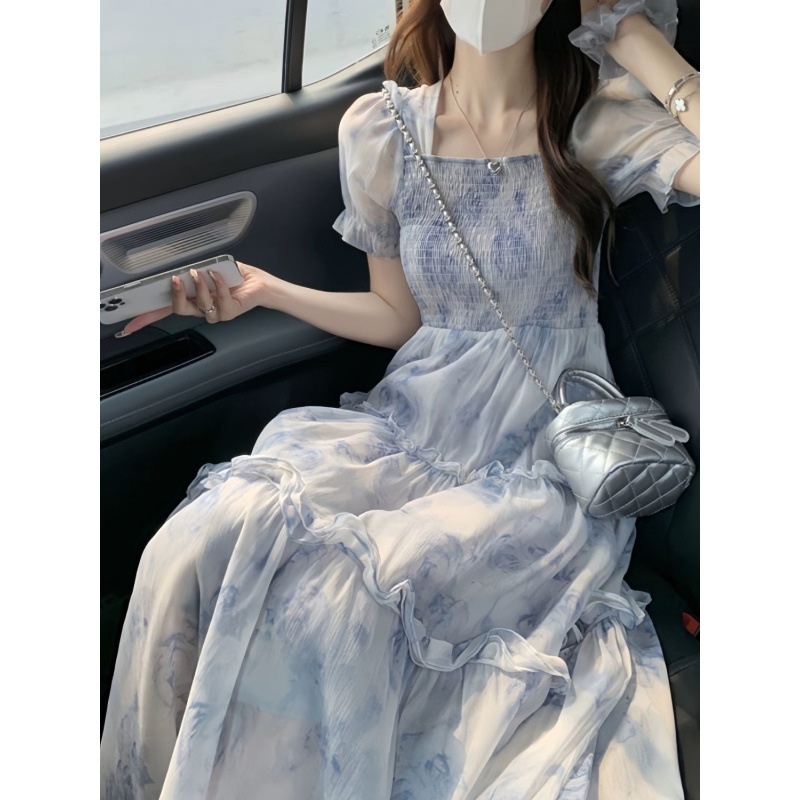 洋風婦人服ワンピース夏服2025年新型フレンチスカートが痩せています。