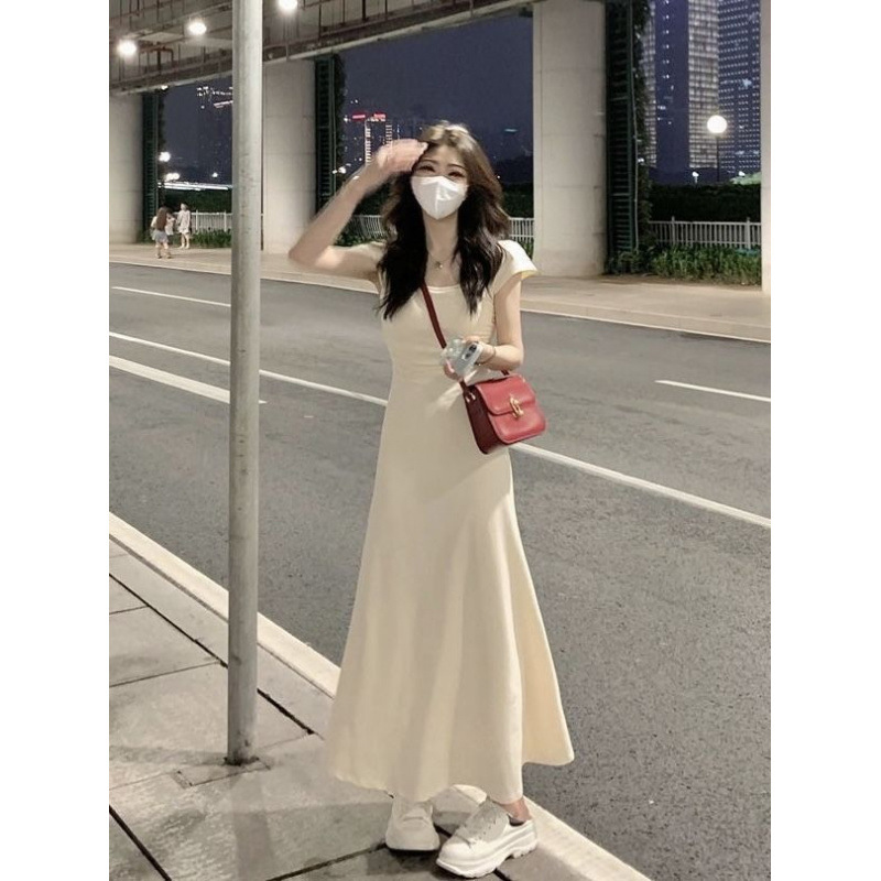 美ラードの夏のワンピースはやせている半袖の気質の長いスカートの女性の2025新型の修身のフランス式は腰の大きいスカートを収めます。
