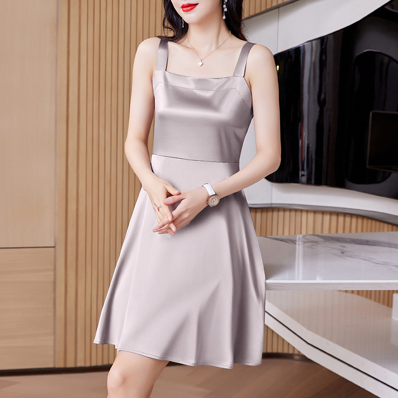高級アセテートサテンサスペンダードレス春夏新作ゆったりインナーレイヤリングノースリーブアウターロングスカート